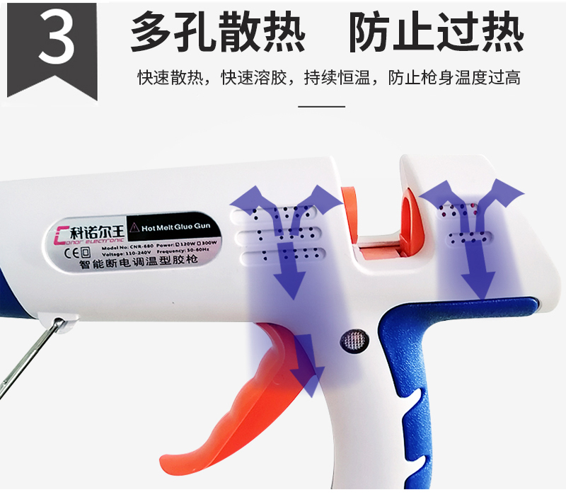 • 产品用途:CNR-680智能断电热熔胶枪 可调温 自动断电更安全 不滴胶不漏胶省胶