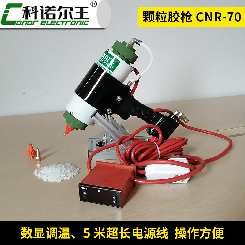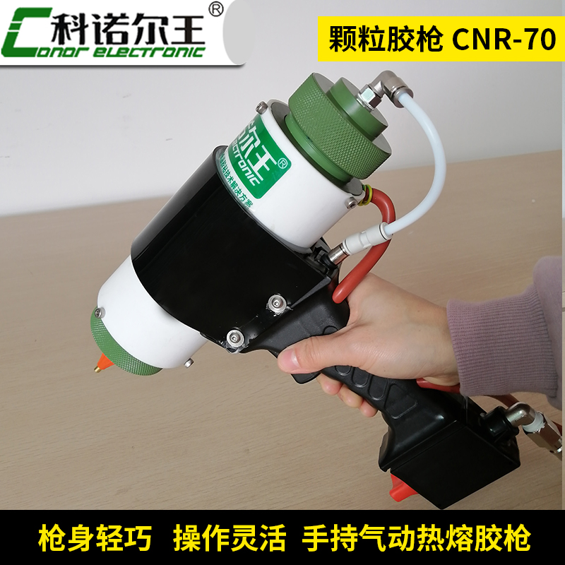 CNR-70胶枪可使用多种形状热熔胶,颗粒状、片状、块状、棒状等热熔胶系列。